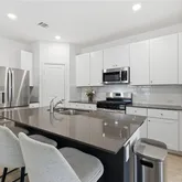 - Interior Features: AllBedroomsDown, CeilingFans, CarbonMonoxideDetector, DoubleVanity, EntranceFoyer, HighCeilings, HomeOffice, PrimaryDownstairs, MainLevelPrimary, OpenFloorplan, SeparateShower, WalkInClosets, WindowTreatments, BreakfastBar, BedroomOnMainLevel, FullBathOnMainLevel, KitchenIsland, KitchenFamilyRoomCombo, KitchenDiningCombo, Pantry, SolidSurfaceCounters