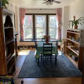 Nicely refreshed kitchen Large level back yard. Spring will be here before you know it. Great for gardening Upstairs 3 nice sized bedrooms. Bathroom has been refreshed. Large basement. Washer and dryer in basement. one car garage for very small car or use for bicycles and more storage....Relax on the large front porch. Walk through the front door onto beautiful hardwood floors. Sunlight beaming into the living and dining room through large windows. 2 decorative fireplaces. dining room has window seat