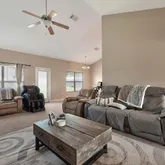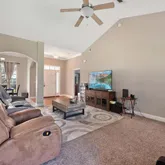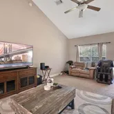 - Interior: Ceiling Cathedral, Ceiling TrayCofferd, Floor Tile, Floor Vinyl, Floor WW Carpet, Split Bedroom, WasherDryer Hookup, Window Treatmnt None