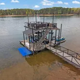 bunkroom that sleeps six, and a dedicated home gym. Upstairs, you'll find two additional bedrooms connected by a Jack-and-Jill bathroom, a cozy office nook, and an impressive TV/media room perfect for movie nights. Outdoor recreation continues with a half-court basketball and pickleball court, plus a private party-boat dock equipped with a lift and two jet ski ports. With 90 feet of riprap shoreline and located outside of a non no-wake cove, you can watch the kids play on the open water right from your living room, patio, or dock. This is more than a home-it's a private waterfront retreat designed for making lifelong memories.