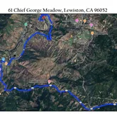 - Remarks : Directions: Take CA-299 West for 24 miles and turn Right onto Lewiston Rd. Drive 4 miles then turn Left onto Goose Ranch Rd. Drive 1 mile then Left onto Salt Flat Rd. 1/2 mile to Chief George Meadow to the Left. Follow to the end and home will be on the left side with the circular driveway.