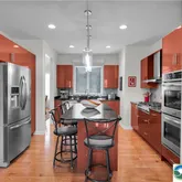 - Room Description: Gourmet Kitchen w/ Granite Countertops & Island with seating, Double Wall Oven, Gas Cooktop w/range hood, all Stainless Steel appliances included