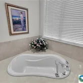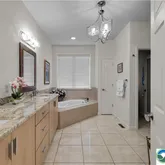 - Room Description: Spa-like bath, with soaking tub, walk-in large tiled shower w/ glass surround, double sinks, granite countertops, upgraded fixtures