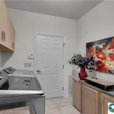 - Room Description: Regular stainless sink, granite countertop, lots of cabinetry, closet, pull-down storage above, washer & dryer included