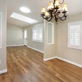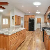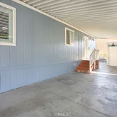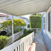 61 Saddleback Rd. is situated on a desirable inner lot that is close to the community clubhouse, pool, and spa. New exterior and interior paint was just completed prior to going on the market. Multiple solar tubes as well as a dormer in both the living room and guest bedroom provide an abundant amount of natural light. The home features a fully remodeled kitchen and has wood laminate flooring throughout. The kitchen includes granite counters, tile backsplash, tons of cabinet space, a built-in desk, and kitchen island. The dining room has a lovely chandelier and a large built-in hutch with interior lighting. There are many important structural upgrades such as 6 inch interior walls (same as single family construction), thicker insulation, architectural roof shingles, composite porch decking, and custom built solid wood cabinets throughout the home. Wood “Plantation” shutters in the living room, dining room and kitchen are a lovely upgrade. Moving to the exterior, an extra large 8ft by 20ft raised deck sits directly off the front entrance and provides a spacious outdoor area for relaxing. There is a sizeable shed located in the driveway. Home also includes a central A/C and beautiful landscaping to enjoy. Rent of only $1285 is a great value for Orange County that is rare to find for the quality of the Community. Saddleback Mobilodge is one of the most beautiful and peaceful manufactured home communities in Orange County. The community has fully mature trees throughout, lush landscaping in the common areas as well as neatly manicured yards and the vast majority of the homes are newer. Park amenities include a clubhouse, pool, spa, billiards room, library, shuffleboard court, RV storage, and an active and fun social club that plans events weekly and monthly.