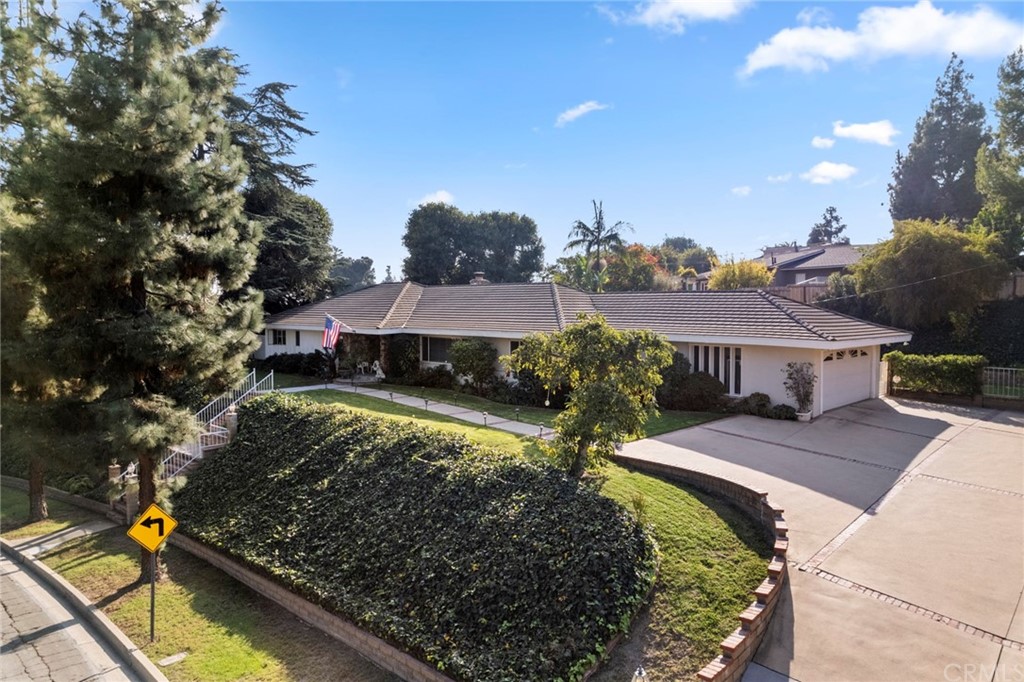 Welcome to beautiful 610 Laguna Road! Over a 1/2 acre of tranquility with an exquisite gray flagstone entry. A traditional, large, one level ranch style home with 4 bedrooms and 2.5 bathrooms. A luscious back yard with succulents and beautiful foliage, an extended deck and pool, perfect for entertaining all during the year. The kitchen boasts long granite counters with a stove and double oven, open to the family room with its cozy fireplace and direct access to the back yard, a separate formal dining...Welcome to beautiful 610 Laguna Road! Over a 1/2 acre of tranquility with an exquisite gray flagstone entry. A traditional, large, one level ranch style home with 4 bedrooms and 2.5 bathrooms. A luscious back yard with succulents and beautiful foliage, an extended deck and pool, perfect for entertaining all during the year. The kitchen boasts long granite counters with a stove and double oven, open to the family room with its cozy fireplace and direct access to the back yard, a separate formal dining room, and large living room both with huge pane windows. The hallway leads you to two bedrooms on the left with a Jack and Jill bathroom with full bathtub . One of the two bedrooms on the right is being used as an office. The master bathroom has a separate shower and jetted tub with dual sinks and custom accessories. The master bedroom has mirrored closets across the entire room. Both the master bedroom and the office/bedroom lead directly out to the patio and pool. The pool uses solar which is paid for. This comfortable home also boasts both wood and tile flooring, a concrete tile roof, utility room, ceiling fans, kitchen with Everpure filter, alarm system, outside area with dry bar perfect for barbecuing, and a two-car garage with lots of guest parking. There is a sprawling grass area and so many fruit trees they're too many to count; 3 avocados, an Asian pear, 2 lemon trees, a lime, orange, pink grapefruit, peach, a Fuji apple, and fig tree. It's close to award winning Laguna Road Elementary School, Parks Junior High and Sunny High School, St. Jude Hospital, Laguna Lake, and also to Fullerton's vast downtown restaurants as well as the Brea Mall!