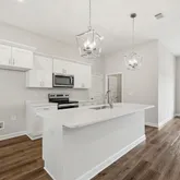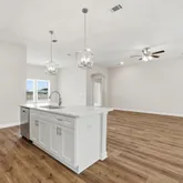 - Interior: Ceiling Raised, Floor Vinyl, Floor WW Carpet New, Kitchen Island, Lighting Recessed, Newly Painted, Pantry, Pull Down Stairs, Shelving, Split Bedroom, WasherDryer Hookup
