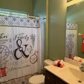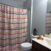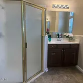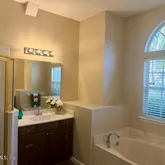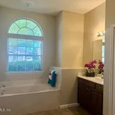 Has garden tub and large shower plus two walk in closets. Gorgeous lot and nice community, sidewalks community pools yes more than one even a slide and water splash area, play ground, basketball courts,