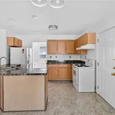 opens directly into the well-appointed kitchen. The kitchen provides ample cabinet and counter space and transitions easily