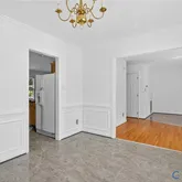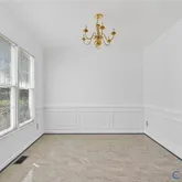 seamless flow from room to room. The dining room is enhanced with crown molding, wainscoting, and a chair rail, and