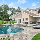 Step outside to your personal oasis, featuring a breathtaking 1,800-square-foot stone terrace. Spend your days lounging by the heated saline gunite pool and hot tub, or host...Prime opportunity for a summer getaway, this furnished rental in a serene sanctuary just an hour north of New York City. Set on nearly three private acres, this Contemporary Colonial home offers a peaceful escape surrounded by nature. A long driveway leads you to your secluded retreat, complete with a spacious front and backyard.