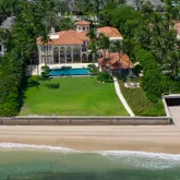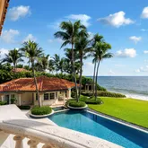 On almost an acre of tropically landscaped gardens and sweeping lawns, this gated estate with 130 feet on the ocean invites an elevated outdoor living experience. The expansive loggia, with a summer kitchen and a gas grill, overlooks the heated infinity-edge pool with an overflow spa, while a seaside gazebo serves as a picturesque ocean-view perch. The detached guest house also serves as a cabana, with a living room, kitchenette, bedroom and full cabana bath. RESIDENCE: