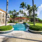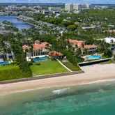 Resembling a Mediterranean villa reminiscent of the South of France, this lavishly furnished oceanfront six-bedroom, 12,968± total-square-foot estate blends elegance with ease that elevates resort-style living to a new level of luxury. Through double glass doors adorned with wrought iron, the grand entry foyer unfolds past the dramatic circular staircase set within a tower and flows through colonnaded galleries to the magnificent salon, crowned by a soaring two-story ceiling. A gas fireplace, topped by a striking overmantel trumeau, creates a welcoming ambience, while four sets of French doors to the ocean-view loggia invite the outside in. For a moment of quiet respite, step into the library, featuring custom built-in cabinetry, a coffered ceiling and French doors that also open to the ocean-view loggia and pool. From the gracious dining room, a butler's pantry accesses the cook-island kitchen, fitted with custom wood cabinetry, granite countertops, and professional-grade appliances. In an open layout, the kitchen adjoins an intimate ocean-view breakfast area and the family room with a large wet bar. Completing the first-floor layout are an ensuite guest bedroom and a laundry room. Upstairs, the primary suite, an oasis of serenity, opens to a large ocean-view balcony. Details of the suite include a coffered ceiling, gas fireplace, custom-fitted walk-in closets and a spa-inspired light-filled bathroom fitted with dual vanities, a soaking tub, a walk-in shower and two water closets. The VIP guest bedroom suite, which also opens to an ocean-view balcony, comprises banks of wall closets and a large bathroom with double sinks, a spa tub and walk-in shower. Perfect for children, one of the guest bedroom suites is fitted with built-in beds, and its ensuite bathroom is finished with whimsical wave-patterned decorator tile in the shower, while the vanity with dual sinks features luminescent undercounter lighting. On the lower level are staff quarters and access to the garages that accommodate three cars. With vast ocean views, complete architectural harmony and every amenity accounted for, this is one of Palm Beach County's most complete and compelling private lease offerings. The information herein is deemed reliable and subject to errors, omissions or changes without notice. The information has been derived from architectural plans or county records. Buyer should verify all measurements