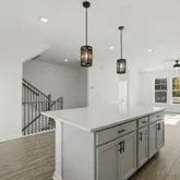 - Kitchen Features: Cabinets Stain, Eat-in Kitchen, Kitchen Island, Pantry, Pantry Walk-In, Solid Surface Counters, View to Family Room