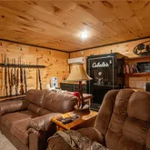 Discover the ultimate in Ozark living at 614 Water Tower Road, a stunning 5-bedroom, 4-bathroom built in 2023 and situated on over 10 acres in Van Buren, Missouri. This is a rare find, featuring a private, stocked pond right in your front yard and deeded access to the crystal-clear Current River just a "stone's throw" from the property corner. The main residence is designed for seamless, no-stairs living and boasts premium finishes throughout, including a custom kitchen with quartz countertops and premium cabinetry that flows into a large family room anchored by a cozy fireplace. The master suite is a true sanctuary with an expansive master bath, while the inclusion of a self-sufficient in-law apartment adds incredible versatility for guests or multi-generational living. Security and entertainment are paramount here, featuring a fully finished concrete safe room with custom built-ins and a dedicated "man room" for collectibles. The exterior of this property is built for the true outdoorsman and entertainer alike. Over 1,600 square feet of covered porch space offers the perfect setting for hosting large groups or relaxing around the fire pit under the stars. Storage is never an issue with the 18-foot-tall garage equipped with jack-shaft doors, offering enough height for boats, RVs, and additional bunk room / hangout area tucked above the rear of the garage. Located just minutes from the heart of Van Buren, you are perfectly positioned at the gateway to the Ozark National Scenic Riverways, Big Spring, and thousands of acres of National Forest. Whether you are seeking a recreational retreat or a low maintenance full-time residence, this property offers unparalleled proximity to Missouri’s most famous spring-fed river and surrounding state parks.