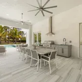 - Exterior Features: Open Porch/Lanai, Built In Grill, Built-In Gas Fire Pit, Outdoor Kitchen, Outdoor Shower, Fence, Outdoor Fireplace