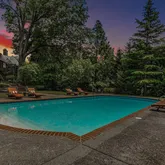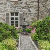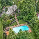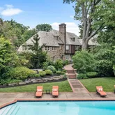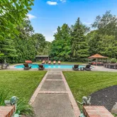 The lower level offers a finished large room with amazing ceiling height, a fourth half bath and many other storage spaces. In addition this home has a whole-house generator, a sprinkler system, a three-car garage and a full slate roof. The landscaped grounds are both spectacular and enchanting. Custom lit, brick pathways lead you to the impressive heated pool, lounge areas and to a very special Koi pond which was so thoughtfully created and not to miss. Lastly, tucked away, there is a vegetable garden.