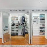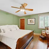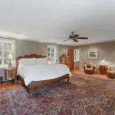 The elegant primary suite encompasses a sumptuous ensuite bathroom complete with Carrera marble tiling, a large soaking tub with air jets, marble shower surround and radiant heated floors. The bedroom is spacious, featuring a wood-burning fireplace and charming french doors that lead to the covered deck. Luxurious dressing room, vanity alcove and separate walk-in closet create coveted closet spaces.