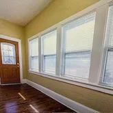 bathroom, and the upper two bedrooms and one bath. The main floor unit has hardwood floors, a