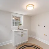 The main level opens into a generously scaled living room—comfortable, welcoming, and well suited for both quiet evenings and casual entertaining. From there, the home flows naturally into a defined dining area and kitchen, creating a layout that feels intentional and functional. A dedicated laundry room at the rear of the home is a rare and valuable convenience in this part of the city, while a full bath on this level adds everyday practicality and flexibility for guests.