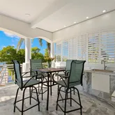 - Exterior Features: Balcony, French Doors, Hurricane Shutters, Irrigation System, Lighting, Outdoor Kitchen, Rain Gutters, Shade Shutter(s), Sprinkler Metered