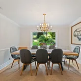- RoomDescription 1: Entry foyer, spacious formal living room with bay window, formal dining room, eat in kitchen with sliding glass door to deck, family room, mudroom with access to garage, closets, laundry and side door to driveway, powder room