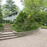 Completing the home is pristine hardscaping, highlighted by a custom paver drive with a premium Tesla charging station and walking paths leading to the tucked-away entrances. A rare, flat front lawn offers the perfect setting for private play, all framed by serene treetop views.