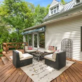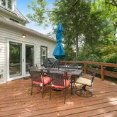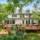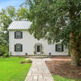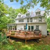 Welcome to The Original Estate at Mazwood, a beautifully maintained non-historic farmhouse built in 1900, perfectly situated on a private 0.74-acre lot in the highly sought-after Heritage Walk community. This charming home blends timeless character with thoughtful modern updates, offering endless potential—live comfortably as-is or build your dream home on this rare, oversized property. Step inside to find gorgeous original hardwood floors, rich with warmth and history, and bask in the natural light pouring in through newer, energy-efficient windows. The updated kitchen boasts granite countertops and opens into a bright, spacious breakfast area with a wall of windows overlooking the serene, tree-lined backyard. Step out onto the large deck, perfect for entertaining, relaxing, or enjoying peaceful mornings in nature. This inviting home also features: