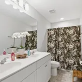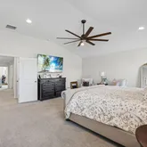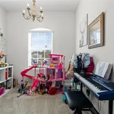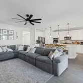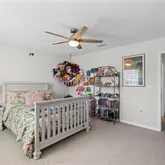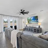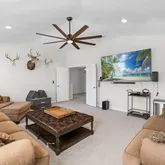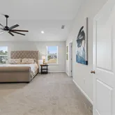 - Public Remarks: Step into this beautifully designed 5-bedroom, 3-bath home featuring a bright, open layout ideal for everyday living and entertaining. The main floor offers spacious living areas with ceramic tile in the main spaces, a family room and separate living room, and a stunning kitchen with quartz countertops, a large island, stainless steel appliances, and a double oven. A first-floor guest bedroom provides added flexibility. Oversized 3-panel sliding glass doors lead to the fully vinyl-fenced backyard for seamless indoor-outdoor living. Upstairs includes a generous loft, a versatile media/game room, and a large laundry room. The owner's suite features dual walk-in closets, a garden tub, separate shower, and raised dual vanities. Three additional bedrooms offer ample space for family, guests, or office needs. With thoughtful storage and a functional yet luxurious layout, this home shows like a model and includes a fenced backyard perfect for pets and play.