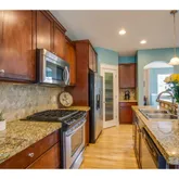 - Kitchen Room Features: Gas Appliances, Hardwood Floors, Island, Pantry, Granite