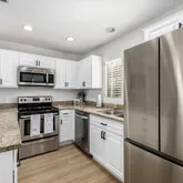 The home features a private backyard, offering outdoor space for relaxing or entertaining...an added feature not commonly found in many townhouse-style properties within the community. Recent interior updates include new luxury vinyl plank flooring, three newly installed ceiling fans, and an updated overhead dining light. Both bathrooms have been refreshed with updated vanities, mirrors, lighting, and faucets. The kitchen cabinets have been professionally painted and adorned with new hardware. The home also includes a new dishwasher, a new washer and dryer set, and a recently installed hot water heater.