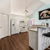 - Kitchen Features: Breakfast Bar, Cabinets White, Stone Counters, View to Family Room