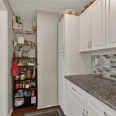 Step outside and enjoy a resort-style outdoor setting. The screened-in inground pool is designed for both relaxation and entertaining, featuring a water fountain and swim-out, all surrounded by natural views. A covered patio offers an inviting space for morning coffee, gatherings, or quiet evenings outdoors, while the low-maintenance composite and aluminum front and rear porches provide long-lasting durability. Inside, the home opens to a spacious open-concept living area designed for both everyday living and gatherings. The upgraded kitchen serves as the heart of the home, featuring granite countertops, upgraded cabinetry, and a large central island that overlooks the main living space, creating a natural flow between cooking, dining, and relaxing. Modern appliances, including a gas range, complete the space, while a matching butler’s pantry adds additional workspace and storage. The split-bedroom floor plan provides separation and functionality. The primary suite includes a walk-in closet, dual granite vanities set at a comfortable height, and a dedicated indoor laundry area. On the opposite side of the home, a den offers flexible space for reading, working, or relaxing. Two additional bedrooms complete the layout, one featuring custom built-in cabinetry suitable for office, creative, or hobby use.