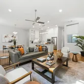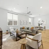 Generously sized primary suite offers a large walk-in closet and spa-inspired shower. Secondary bedroom provides flexibility for guests or a home office. A private patio is thoughtfully positioned off...Stunning contemporary condo with light-filled open floor plan in an unbeatable location just steps from premier shopping, dining, and entertainment. The chef’s kitchen features elegant finishes and flows seamlessly into the spacious living and dining areas, ideal for everyday living and entertaining.