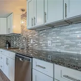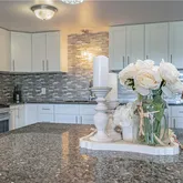 - Room Description: White cabinets, island seating w/ pendants, granite counters, tile back splash