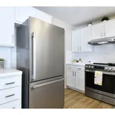 - Kitchen Appliances: Dishwasher, Free Standing Range, Free Standing Refrigerator, Range Hood, Solid Surface Countertop, Stainless Steel Appliance, Tile