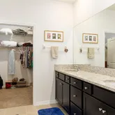 The primary bedroom has plenty of room for a king-sized bed, two walk-in closets, and carpeting. The Primary bathroom features dual sinks, a walk-in shower, a linen closet, and a water closet. Kitchen