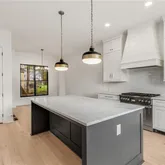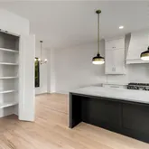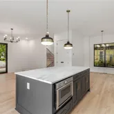 - Kitchen Features: Cabinets White, Kitchen Island, Stone Counters, View to Family Room, Other