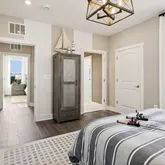 This thoughtfully designed home features 3 bedrooms, 2.5 baths, and a 1-car garage. Inside, you’ll find an open layout complemented by a dry bar, electric fireplace, and an owner’s suite with a sitting room and large walk-in closets. The kitchen is beautifully appointed with a single oven, microwave, gas cooktop, range hood, dishwasher, pendant lights, and a stylish tile backsplash, all paired with sleek quartz countertops. Additional features include laminate flooring throughout most of the home, with tile in both full baths. The owner’s bath is designed with comfort in mind, offering a shower with a seat, a handheld shower wand, dual sinks, and quartz countertops. For a full list of features for this home, please contact our sales representatives. Photos are for illustrative purposes only and may not represent the exact home or finishes available.