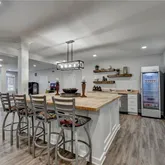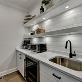 - Kitchen Features: Breakfast Bar, Cabinets White, Kitchen Island, Pantry Walk-In, Second Kitchen, Stone Counters, View to Family Room, Wine Rack
