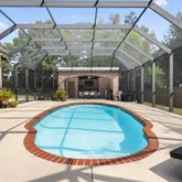 - Pool Features: Fenced, Fiberglass, Filtered, Heated, In Ground, Outdoor Pool, Salt Water, Screen Enclosure