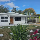 Welcome home to the absolute heart of downtown New Port Richey! This is your chance to own a very well maintained, classic concrete block home that perfectly blends cozy, low-maintenance living with vibrant urban accessibility. Featuring 2 comfortable bedrooms and 1 full bathroom, this residence is designed for effortless Florida living. The interior offers excellent functionality, highlighted by a valuable, versatile bonus room. This enclosed porch, complete with charming jalousie windows, is a bright, airy space ideal for a dedicated home office, sunroom, or den. Practicality continues outside with a covered carport and a dedicated, enclosed laundry room/utility space at the rear, providing secure storage and keeping laundry out of the main house. Step outside to discover a truly serene setting. The yard is beautifully manicured and Florida-friendly, featuring an attractive, low-maintenance design complemented by various decorative rocks and stone features throughout the front and back. For ultimate parking flexibility, in addition to the front carport, the property benefits from convenient rear alley access, perfect for extra vehicles or storage needs. The location is simply unparalleled. Enjoy a lifestyle where everything is walkable: you're just a block or so from the Aquatic and Recreation Center, a few blocks from the Public Library, and right down the street from Sims Park, Orange Lake, the Pithlachascotee River, and public boat ramp. This is the epicenter of downtown life, offering year-round festivals, concerts, street and boat parades, along with quick access to the Richey Suncoast Theatre, diverse restaurants, and vibrant nightlife all throughout this golf cart friendly community. This highly desirable downtown gem is ready for its new owner! Schedule your showing promptly to take advantage of this opportunity!
