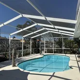 - Pool Features: Deck, Fiberglass, In Ground, Screen Enclosure