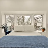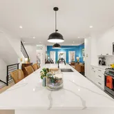 The main level features an open floor plan with soaring ceilings, recessed lighting,...Step into this beautifully renovated upper-level Victorian-style row home condo, blending classic architecture with today’s modern conveniences. Enter through your private entrance and you're immediately greeted by wide-plank wood floors that flow seamlessly throughout both levels. Large north and south-facing windows fill the home with natural light, each outfitted with custom shades for added privacy and flexibility.