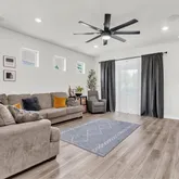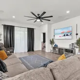 - Interior Features: Ceiling Fan(s), Eating Space In Kitchen, High Ceilings, Living Room/Dining Room Combo, Open Floorplan, Pest Guard System, Primary Bedroom Main Floor, Smart Home, Split Bedroom, Stone Counters, Thermostat, Walk-In Closet(s), Window Treatments