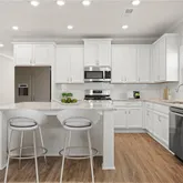 - Kitchen Features: Cabinets White, Kitchen Island, Pantry, Pantry Walk-In, View to Family Room