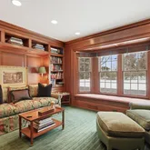 - RoomDescription 1: Foyer, Living Room, Library (w/ bathroom), Office, Dining Room, Den, Eat in Kitchen, Family Room, Powder Room, Laundry Room, Mudroom, 3 Car Garage
