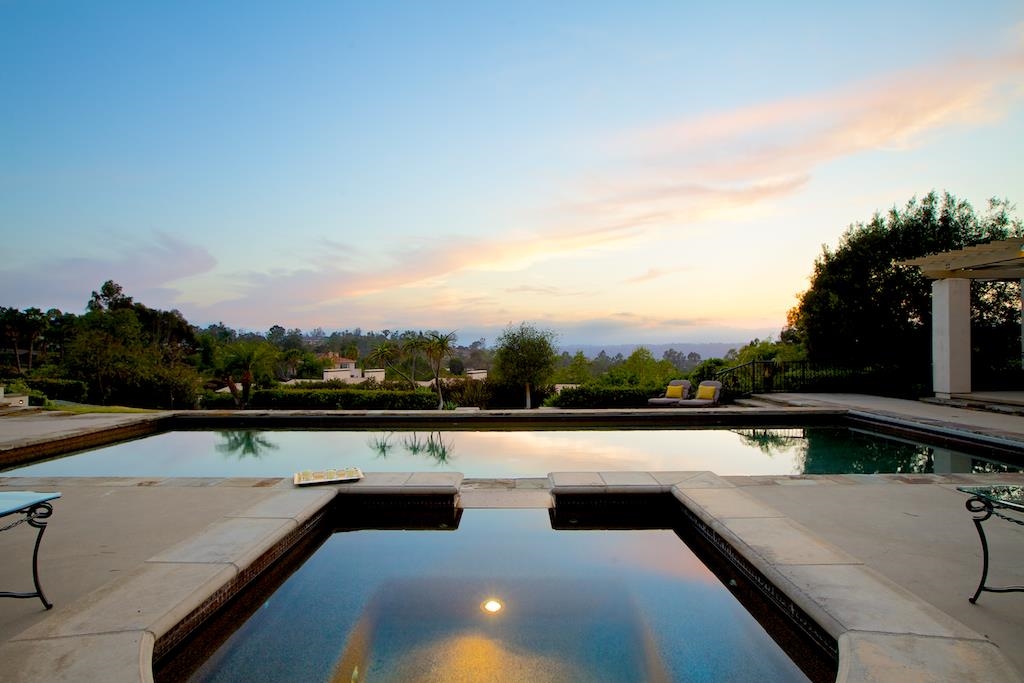 Gorgeous Home with detached Guest House & Tennis made for indoor/outdoor living & entertaining. Spectacular remodel. Panoramic Southwest Views. Private 2.2 Acres! 1BR/1BA Guest House w/ Kitchen and Living Room. RSF 5 Star Schools. No HOA fees. Minutes to 56, Torrey Pines HS, RSF Village, Del Mar Highlands & Pacific Highlands Shopping Centers. Gourmet Chef's Kitchen. Bright open Kitchen Family Room Combo. Your own backyard resort! Solar heated salt water lap pool. Outdoor built-in BBQ. Fruit trees,...Gorgeous Home with detached Guest House & Tennis made for indoor/outdoor living & entertaining. Spectacular remodel. Panoramic Southwest Views. Private 2.2 Acres! 1BR/1BA Guest House w/ Kitchen and Living Room. RSF 5 Star Schools. No HOA fees. Minutes to 56, Torrey Pines HS, RSF Village, Del Mar Highlands & Pacific Highlands Shopping Centers. Gourmet Chef's Kitchen. Bright open Kitchen Family Room Combo. Your own backyard resort! Solar heated salt water lap pool. Outdoor built-in BBQ. Fruit trees, herb gardens, drought resistant buffalo grass, hand cut stone paths and walkways, tranquil patios & circular driveway. 180' Panoramic Views of Ocean Ridge Line & Westerly Sunsets. Extremely Private Sunny Elevated Hilltop 2.2 Flat Acre Site off Long Private Drive at end of quiet cul-de-sac. Remodeled to perfection! Like New! Dream Gourmet Kitchen. Separate Office Media Room. The Spanish-influenced estate offering 5 br, 4.5 ba, and a separate office/media room (including detached guest casita) possesses a warm palate of natural materials, including distressed rustic stone floors, dark wood cabinets, lumber ceiling beams and mantels. The foyer greets you with gorgeous views through the sunlit living room and formal dining room, each with its own private patio. The conveniently-located, state of the art kitchen features a working island, granite throughout and tumbled stone backsplashes, along with top of the line appliances and fixtures, including a 160 bottle Eurocave wine storage unit. The comfortable family room takes advantage of the great room concept while providing easy access to outdoor essentials. The secluded private master suite with high ceilings, stone fireplace & an outdoor balcony with westerly views is the perfect enclave with adjacent separate media/office/library. Master bath includes slab & tumbled stone walk-in shower and bath, dual vanities, & two custom walk-in closets. Additional bedrooms boast uniquely detailed combinations of honed, polished or tumbled stone showers. Across the 40' solar heated salt water pool, you will find a 1Br/1Ba guest casita with kitchen, full pantry cabinet & entertainment bar. An additional outdoor entertaining cooking area features DCS grill and cook top. On the east side of the property is a fully-fenced north-south regulation tennis court featuring Plexicushion Prestige surface. The impressive park-like landscaping features fruit trees, herb gardens, drought resistant buffalo grass, hand cut stone paths and walkways, tranquil patios & circular driveway.
