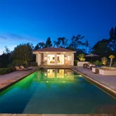 • Supplement: Fruit trees, herb gardens, drought resistant buffalo grass, hand cut stone paths and walkways, tranquil patios & circular driveway. 180' Panoramic Views of Ocean Ridge Line & Westerly Sunsets. Extremely Private Sunny Elevated Hilltop 2.2 Flat Acre Site off Long Private Drive at end of quiet cul-de-sac. Remodeled to perfection! Like New! Dream Gourmet Kitchen. Separate Office Media Room. The Spanish-influenced estate offering 5 br, 4.5 ba, and a separate office/media room (including detached guest casita) possesses a warm palate of natural materials, including distressed rustic stone floors, dark wood cabinets, lumber ceiling beams and mantels. The foyer greets you with gorgeous views through the sunlit living room and formal dining room, each with its own private patio. The conveniently-located, state of the art kitchen features a working island, granite throughout and tumbled stone backsplashes, along with top of the line appliances and fixtures, including a 160 bottle Eurocave wine storage unit. The comfortable family room takes advantage of the great room concept while providing easy access to outdoor essentials. The secluded private master suite with high ceilings, stone fireplace & an outdoor balcony with westerly views is the perfect enclave with adjacent separate media/office/library. Master bath includes slab & tumbled stone walk-in shower and bath, dual vanities, & two custom walk-in closets. Additional bedrooms boast uniquely detailed combinations of honed, polished or tumbled stone showers. Across the 40' solar heated salt water pool, you will find a 1Br/1Ba guest casita with kitchen, full pantry cabinet & entertainment bar. An additional outdoor entertaining cooking area features DCS grill and cook top. On the east side of the property is a fully-fenced north-south regulation tennis court featuring Plexicushion Prestige surface. The impressive park-like landscaping features fruit trees, herb gardens, drought resistant buffalo grass, hand cut stone paths and walkways, tranquil patios & circular driveway.