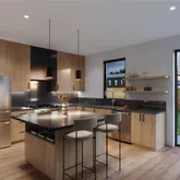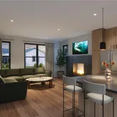 The home features modern design with mid-century flair and thoughtfully curated finishes and details. Tall ceilings, hardwood floors, and fireplace will welcome you from the front door. Entertain with ease from your open-concept kitchen, dining, and living room. Any chef's heart will flutter at the stainless steel Bosch appliance package that includes 36" gas range and custom hood. Quartz countertops, a kitchen island, and handsome cabinetry enhance the sleek kitchen.